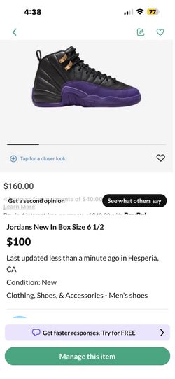Jordans 12’s Size 6 1/2 New In Box$100Highland Park, CA