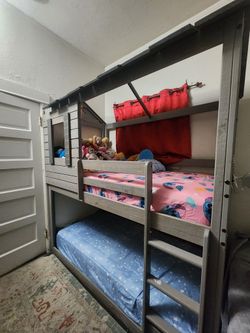 Rustic Grey twin over twin bunk bed with built in ladder$425Los Angeles, CA