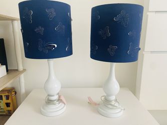 Pier1 Table Lamps 2 White base with blue butterflies patterned shades.$80Miami, FL