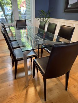 Modern Italian Glass Dining Table + 8 Black Leather Chairs – Designer Set by Seggose & Frag $1,200Portland, OR