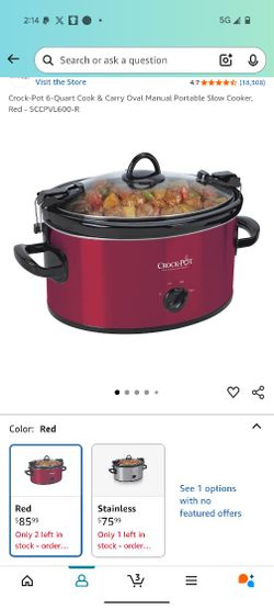 Crock-Pot 6-Quart Cook & Carry Oval Manual Portable Slow Cooker, Red $60Spanaway, WA