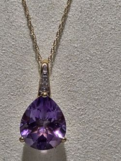 3.0–3.25ct Rose de France Amethyst 14K Gold Filigree Estate Necklace – Pear Cut$900Milan, TN