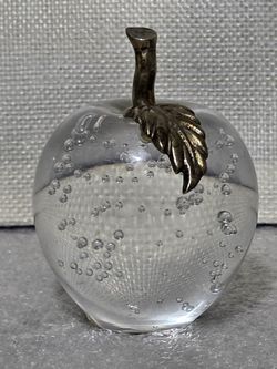 Vintage Clear Art Glass Apple Paperweight 3.5" Controlled Bubbles Brass Stem Leaf$25Milan, TN