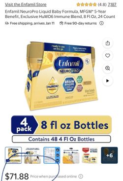 Enfamil NeuroPro Liquid Baby Formula, MFGM* 5-Year Benefit, Exclusive HuMO6 Immune Blend, 8 ​Fl Oz, 24 Count$25Duncan, SC