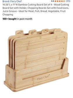 14.56"L x 11"W Bamboo Cutting Board Set of 4 - Wood Cutting Board Set with Holder, Chopping Boards Set with Food Icons, Juice Groove - Ideal for Meat,$30Startex, SC