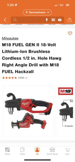 M18 FUEL GEN II 18-Volt Lithium-Ion Brushless Cordless 1/2 in. Hole Hawg Right Angle Drill with M18 FUEL Hackzall$365Washington, DC