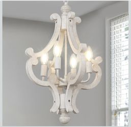 French Country Chandelier, 4-Light Rustic Farmhouse Distressed White Chandeliers for Dining Room, Modern Wood Kitchen Light Fixtures, Hanging Light Fi$28West Covina, CA