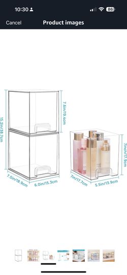 (J) 7.6" H Clear Stackable Storage Drawers, 2 Pack Plastic Organizers Bins for Skincare, Cosmetics,Beauty Supplies,Ideal for Vanity, Bathroom,Kit$14West Covina, CA