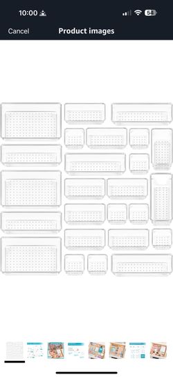 (D)25 PCS Clear Plastic Drawer Organizers Set, 4-Size Versatile Bathroom and Vanity Drawer Organizer Trays, Storage Bins for Makeup, Bedroom, Ki$13City Of Industry, CA