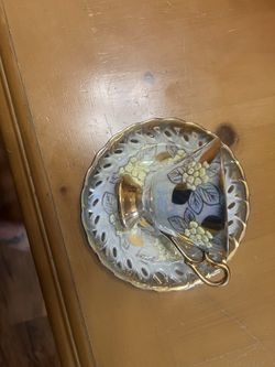 Vintage Crystal Moriage White Hydrangea Teacup and Saucer $30Las Vegas, NV
