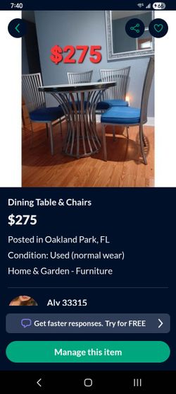 Table w/4 Chairs$275Oakland Park, FL