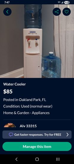 Water Cooler Plus 2- 5GAL jugs$85Oakland Park, FL