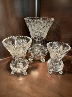 Vintage trio Lead Crystal hand cut East German footed vases$99Tustin, CA