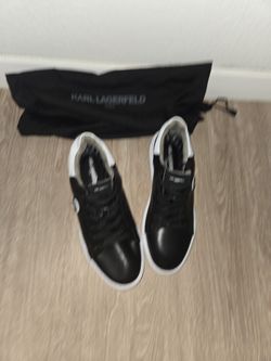 Karl Lagerfeld Low Top Black Leather Sneakers Whote Trim$110San Diego, CA