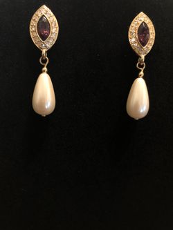 GoldTone Purple Dangle Teardrop Faux Pearl Earrings $30Riverside, CA