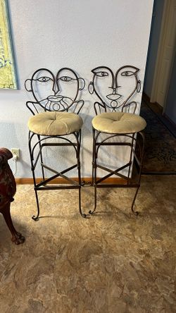 Two John Risley Design Man Woman Bar Stools -cast Iron-copper Hammer $500Poway, CA
