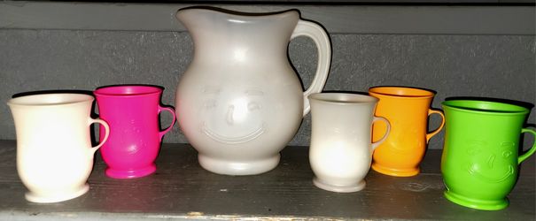 Kool-aid Man 1980s Opaque 2 Quart Pitcher, Matching Cups$30Seekonk, MA