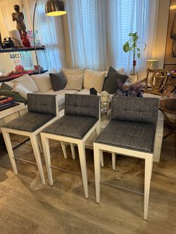 Set Of Three Contemporary White Metal Barstools-White And Black Tweed Upholstery$225Los Angeles, CA