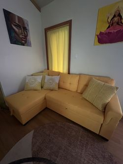 Yellow Linen Fabric Reversible Sleeper Sectional Sofa w/Storage Chaise$275Los Angeles, CA