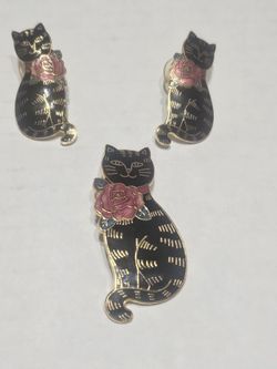 Vintage Black Enamel Cat Earrings And Brooch $25Miami, FL
