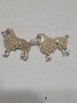 2 Vintage Faux Pearl Silver Tone Poddle Dog Brooch $25Miami, FL