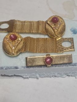 Vintage Goldtone Mesh Cufflinks And Tie Clip Featuring A Red Cabochon Stone$75Miami, FL