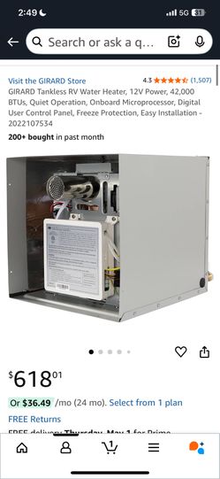 Girard RV Tankless Water Heater 12V Power, 42,000 BTUs$575Gilbert, AZ