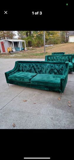 3 Pcs Set Beautiful Green Velvet Couch, Loveseat & Chair$1,250Akron, OH