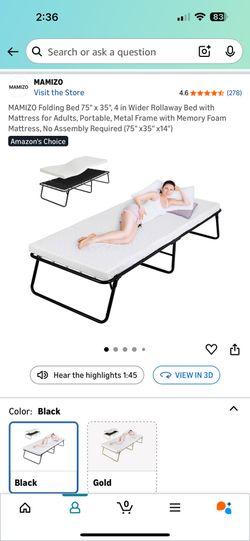 MAMIZO Folding Bed 75" × 35", 4 in Wider Rollaway Bed$100Gardena, CA