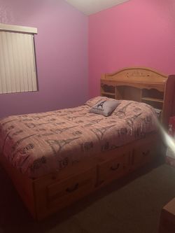 For Sale: Full Wood Bed with Mattress and New Comforter $300Moreno Valley, CA