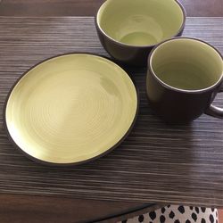 6 Coffee Mugs, 8 Pie Plates , 4 Cereal Bowls - Dark Brown/Green$10Calexico, CA