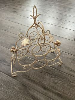 Metal 4 Wine Bottle Holder With Grape Vines And Leaves Tan $15Scottsdale, AZ