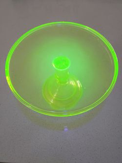 Vintage Vaseline / Uranium Glass Cake Pie Stand Pedestal $150Goodyear, AZ