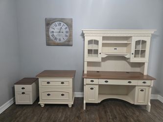 Desk With 2 File Cabinets. The smaller File Cabinet Has Rollers. Desk is 61 1/4" W x 23 5/8 D x 71 3/8 H with Hutch. $350Lehigh Acres, FL