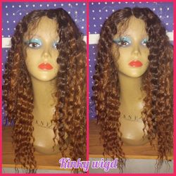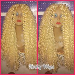 30" #27 Honey Blonde 1b Ombre 2x6 Hd Middle Part Boho kinky Curly Hair Blend Wig $38Pompano Beach, FL