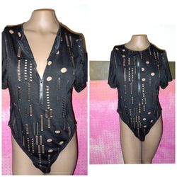 One Piece Bodysuit Zip Up Short Sleeve Snap On Stretchy Cut Out Design Black Size Large$14Pompano Beach, FL