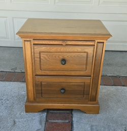 Solid Wood Nightstand W/2 Drawers, Pre-owned Good Condition, Please Read The Description. $49San Bernardino, CA