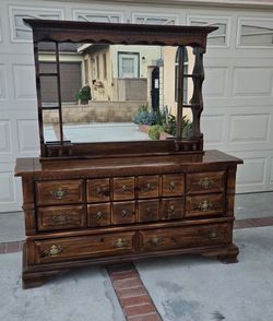 Vintage MCM Solid Wood Dresser W/8 Drawers Brown Pre-owned Good Condition, Please Read The Description.$180Grand Terrace, CA