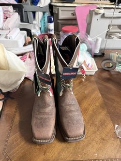 Durango brown leather cowboy boots with Mexican flag design$100Las Vegas, NV