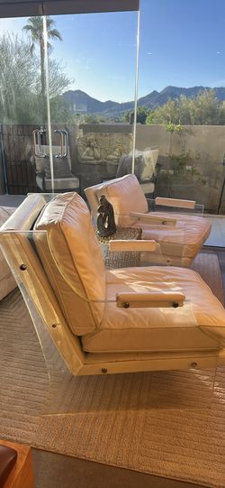 Two Lucite Modern White Leather Chairs Contemporary Designer $600Scottsdale, AZ