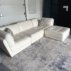 (Sold) Chateau d’Ax Ivory White Leather Sectional — 4pc Modular Over $2.2k New$1,200Encinitas, CA