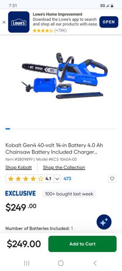 Kobalt 40v Chainsaw W/battery Charger$150League City, TX