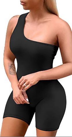 GOBLES Women's Sexy One Shoulder Sleeveless Bodycon Short Pants Jumpsuits One Piece Romper Black XL$2Las Vegas, NV