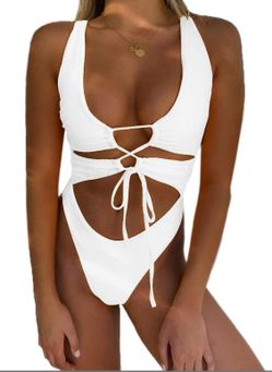 CHYRII Women's White Sexy Cutout Lace Up Backless High Cut One Piece Swimsuit Monokini L$5Las Vegas, NV