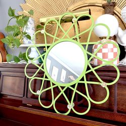 Daisy Flower Mirror Wall Hanging Hooks Coat Rack Jewelry Organizer Bright Green Vintage Vibe 23.5” $45Ontarioville, IL