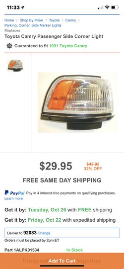Right front blinker 1991 Toyota Camry$15Vista, CA