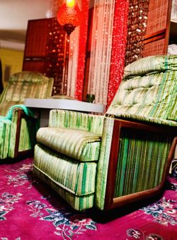 VTG Adrian Pearsall Green Striped Velvet & Teak Wood Boomerang Feet & Lever Large Recliner/Armchairs$895Portland, OR