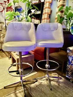 Retro Vintage White Leather & Chrome Adjustable Swivel High Bar Stools$99Vancouver, WA