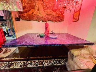 VTG MCM Blue & Black Marmica (Marble & Formica Fusion) Wrought Iron Dining Table$100Portland, OR