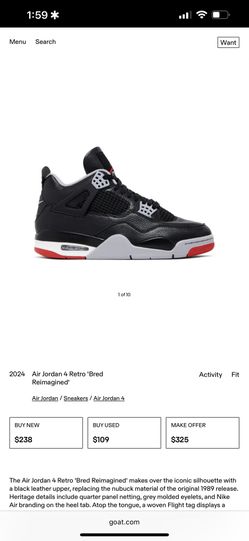 2024 Air Jordan 4 Retro 'Bred Reimagined$183North Las Vegas, NV